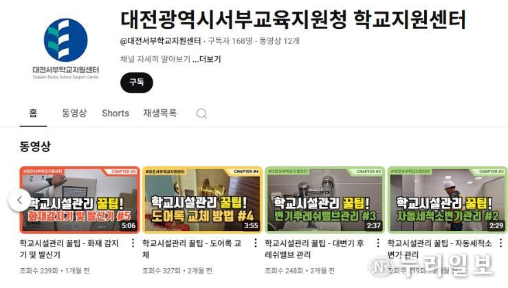 (누리일보) 대전서부교육지원청은 학교 시설관리의 전문성과 효율성을 높이기 위해 학교지원센터 시설관리 주무관의 노하우가 담긴 교육 영상을 유튜브를 통해 제공한다고 밝혔다.