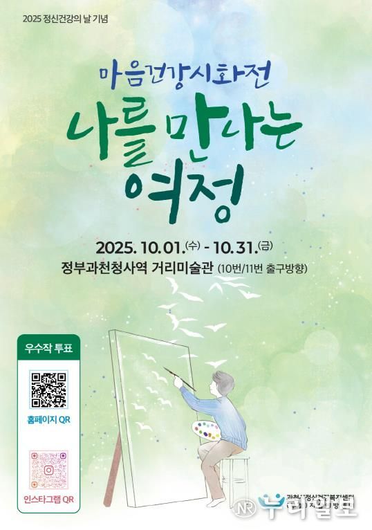 (누리일보) 과천시정신건강복지센터는 정신건강의 날을 기념하여 10월 한 달간 ‘마음건강 시화전-나를 만나는 여정’을 개최한다고 10일 밝혔다.