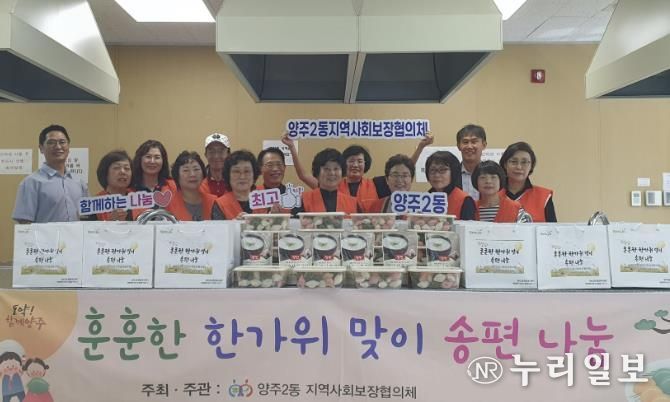(누리일보) 양주시 양주2동 지역사회보장협의체가 최근 추석을 맞아 관내 취약계층 100가구를 대상으로 송편을 전달했다.