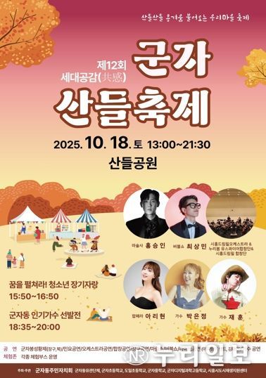 (누리일보) 시흥시 군자동 주민자치회는 오는 10월 18일 오후 1시부터 거모동 산들공원에서 ‘제12회 세대공감(共感) 군자 산들축제’를 개최한다.