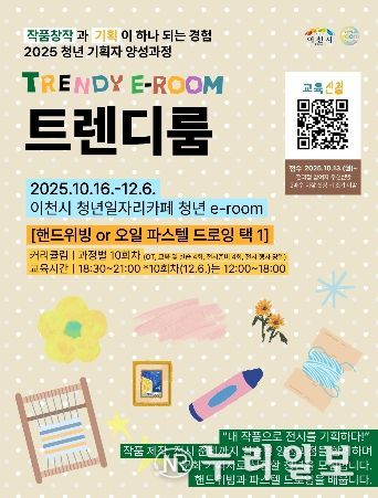 ▲오일파스텔 드로잉 ▲핸드위빙으로 구성하여 예술 작품 제작 및 전시를 준비 및 운영함으로써 문화 기획과 창작 역량을 동시에 강화하는 본 과정은 19세 이상 39세 이하 관내 청년이면 누구나 10월 13일부터 큐알(QR)코드를 통해 신청할 수 있다.
