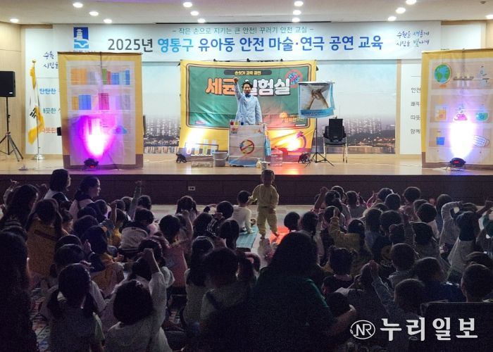(누리일보) 수원시 영통구는 2025. 10. 13. 영통구청 대회의실에서 관내 유아를 대상으로 안전한 위생 습관을 형성하기 위한 ‘찰리박사의 세균실험실’ 체험형 안전마술·연극 공연 교육을 실시했다.