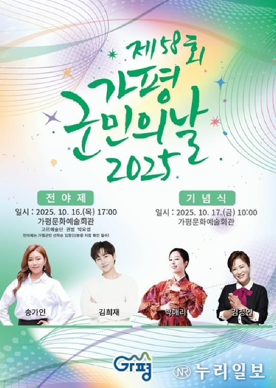 (누리일보) 가평군은 오는 16일 오후 5시, 새롭게 리모델링을 마친 가평문화예술회관에서 ‘제58회 가평군민의 날 전야제’를 개최한다. 이번 행사는 ‘다시, 가평으로’를 슬로건으로 내세워 수해 극복과 지역 재도약을 기원하며 군민 화합의 의미를 담아 열린다.