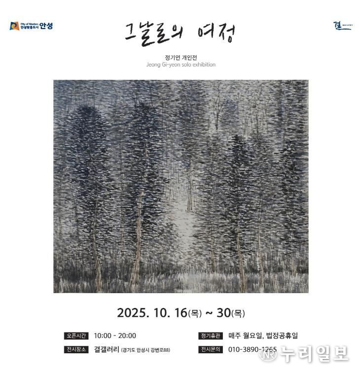 (누리일보) 사계절의 변화를 수묵의 농담으로 담아내는 정기연 작가가 오는 10월 16일부터 10월 30일까지 개인전을 개최한다. 계절의 흐름 속에서 느낀 생명의 움직임을 단순한 감상의 차원을 넘어, ‘표현하고 나누는 예술의 순간’으로 풀어낸 작품들을 선보인다.
