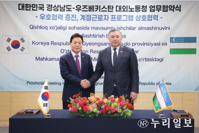 (누리일보) 경상남도는 14일 도청 도정회의실에서 밀양·창녕·합천 3개 시군이 우즈베키스탄 정부와 농업 분야 외국인 계절근로자 도입을 위한 업무협약(MOU)을 체결했다고 밝혔다.