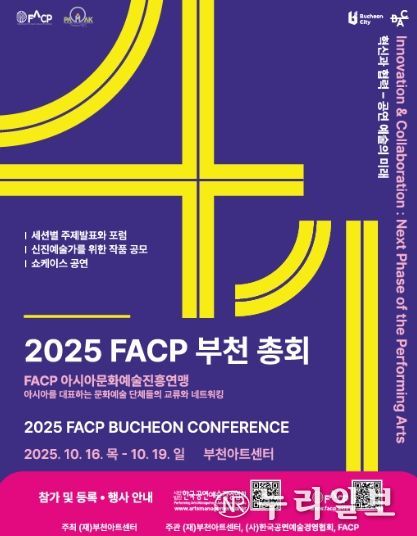 (누리일보) (재)부천아트센터가 주최하고, (재)부천아트센터·아시아문화진흥연맹(FACP)·(사)한국공연예술경영협회가 공동 주관하는‘제41회 2025 FACP 부천 총회(Federation for Asian Cultural Promotion, 이하 FACP)’가 10월 16일부터 19일까지 4일간 부천아트센터 일대에서 개최된다.