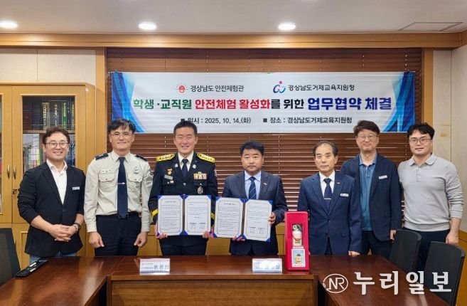 (누리일보) 경상남도 소방본부 13일 경상남도 안전체험관과 거제교육지원청이 체험 중심 안전교육 강화를 위한 업무협약(MOU)을 체결했다고 밝혔다,