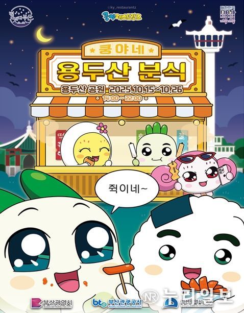 (누리일보) 부산시는 부산관광공사와 오늘(15일)부터 10월 26일까지 용두산공원에서 '별바다부산 나이트 팝업 시즌3'으로 '쿵야네 용두산 분식 팝업'을 운영한다고 밝혔다.