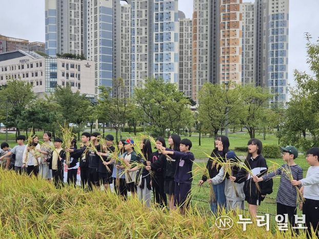 (누리일보) 시흥시는 도심 속에서 미래세대의 생명농업 체험을 위해 ‘2025 도시농업공원 전래 벼 수확체험’ 교육을 10월 13일부터 24일까지 운영하고 있다.