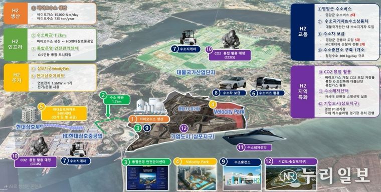 이를 위해 2028년까지 2MW급 청정수소 실증 플랜트를 구축하고, 2030년까지 영암군을 60MW급 에너지 자립형 수소도시로 발전시킬 계획이다.