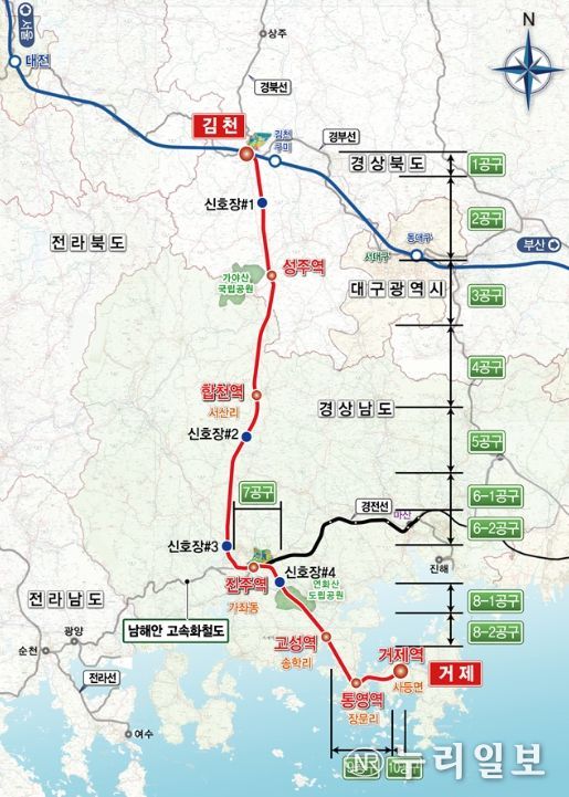 6-2공구, 8-1공구 구간인 진주시, 고성군을 시작으로 내년부터 순차적으로 건설사 선정과 착공이 이뤄질 전망이다.