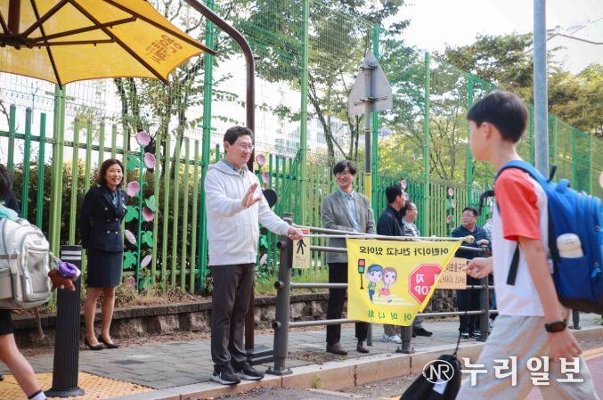 (누리일보) 이상일 용인특례시장은 16일 아침 수지구 용인신촌초등학교 정문 횡단보도에서 어린이들이 안전하게 통학할 수 있도록 교통지도 봉사에 참여하고, 학교 주변 통학로를 점검했다.