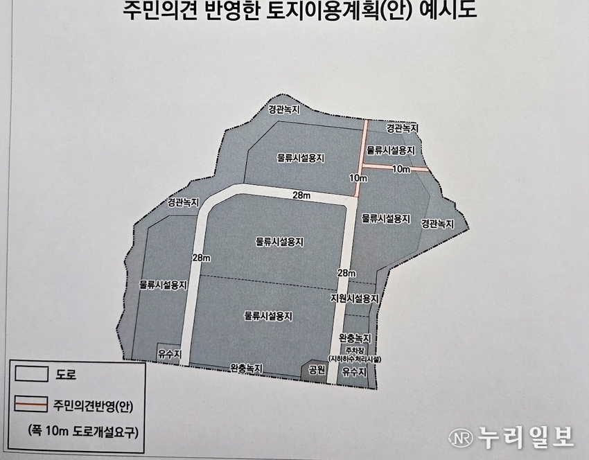 사업시행사인 ㈜에버로지스가 추진 중인 15만여 평 규모의 물류단지는 처음 협의 당시 주민들과 새로운 농로를 개설해 용인시에 기부체납하기로 약속했으나, 최근 경기도 심의에 제출된 도면에서는 해당 농로가 삭제되어 수십만평의 농지가 맹지로 설계된 것으로 확인됐다.