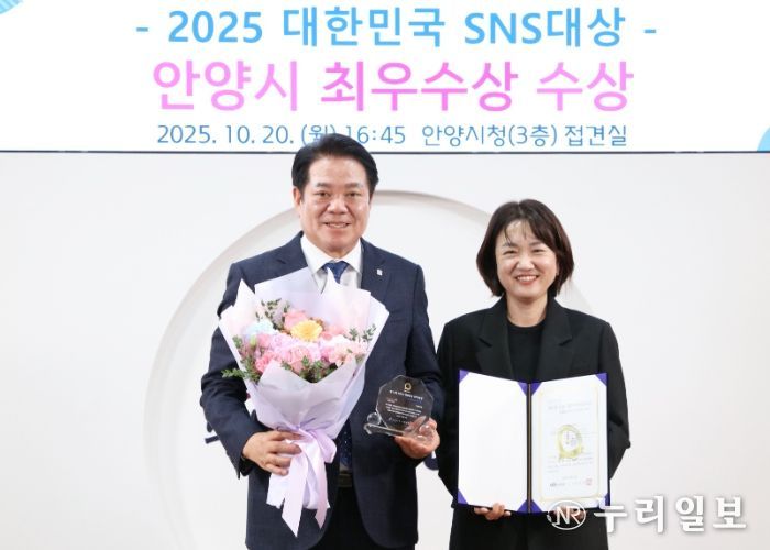 (누리일보) 안양시가 ‘제15회 2025 대한민국 SNS 대상’ 기초지방자치단체 시 부문에서 최우수상을 수상했다.