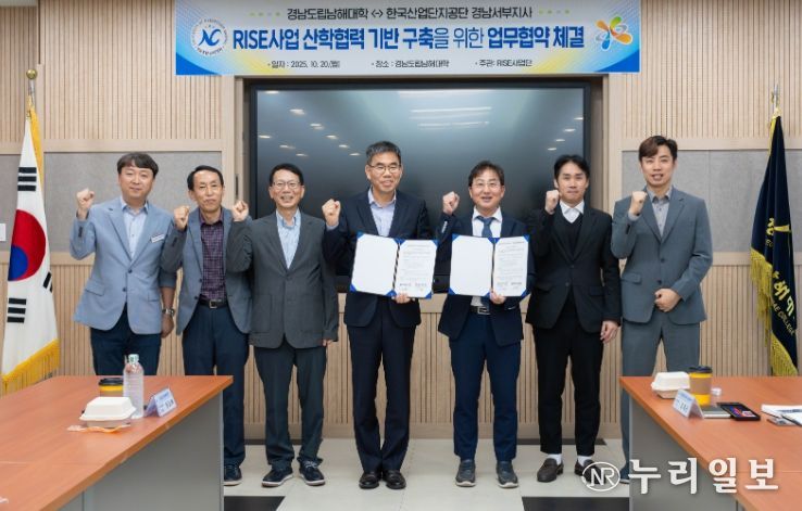 (누리일보) 경남도립남해대학(총장 노영식)은 20일 오후 2시 교내 혁신학습지원실에서 한국산업단지공단 경남서부지사와 ‘경남 지역혁신중심 대학지원체계(RISE) 사업’ 추진을 위한 업무협약을 체결했다고 밝혔다.