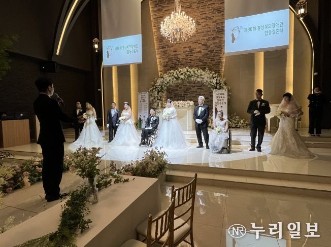 (누리일보) 경상북도는 한국장애인재활협회 경북협회 주관으로 22일 경북 안동 두리원웨딩홀에서 신랑·신부 5쌍과 가족, 친지, 내빈 등 120여 명이 참석한 가운데 ‘제30회 경상북도 장애인 합동결혼식’을 성황리에 개최했다.