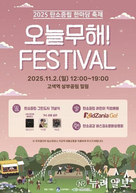 (누리일보) 수원특례시는 11월 2일 정오부터 오후 7시까지 고색역 상부 공원 일원에서 제1회 탄소중립 한마당 축제 ‘오늘무해! 페스티벌’을 연다.