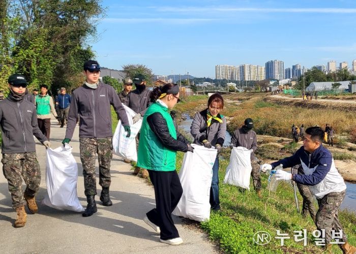(누리일보) 새마을문고 양주시지부는 10월 21일 오전 8시 50분부터 약 2시간 동안 독수리병영도서관 장병들과 함께 부대 앞 샘내 일대 천변에서 ‘건강과 환경을 지키는 줍킹데이’ 행사를 성황리에 개최했다.