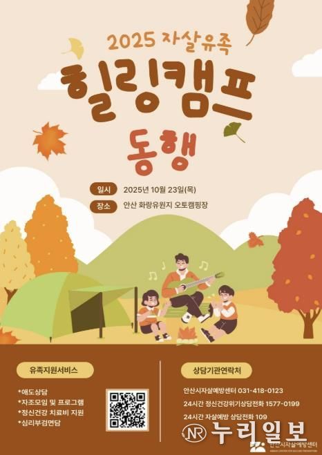 (누리일보) 안산시는 안산시자살예방센터가 지난 23일 화랑유원지 오토캠핑장에서 자살로 가족을 잃은 유족을 위한 ‘힐링캠프’를 개최했다고 24일 밝혔다.