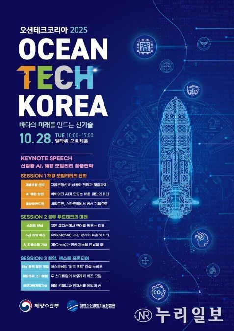 (누리일보) 해양수산부는 10월 28일 서울 엘타워에서 ‘바다의 미래를 만드는 신기술’을 주제로 ‘오션테크코리아 2025’를 개최한다고 밝혔다.