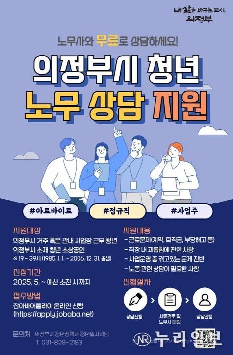 (누리일보) 의정부시는 청년들의 근로권익 보호와 건강한 노동환경 조성을 위해 ‘찾아가는 청년 노무사 상담'을 운영한다.