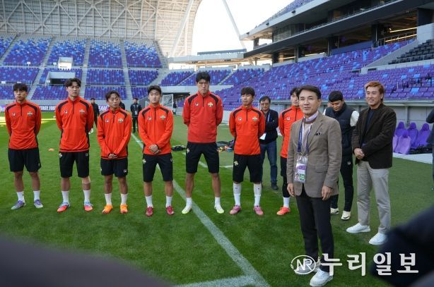 (누리일보) 김진태 강원특별자치도지사(구단주)는 11월 3일 오후 3시, 일본 히로시마 에디온 피스 윙 스타디움을 방문해 아시아챔피언스리그 조별리그 원정경기를 앞두고 훈련 중인 강원FC 선수단을 격려하고 응원의 메시지를 전했다.
