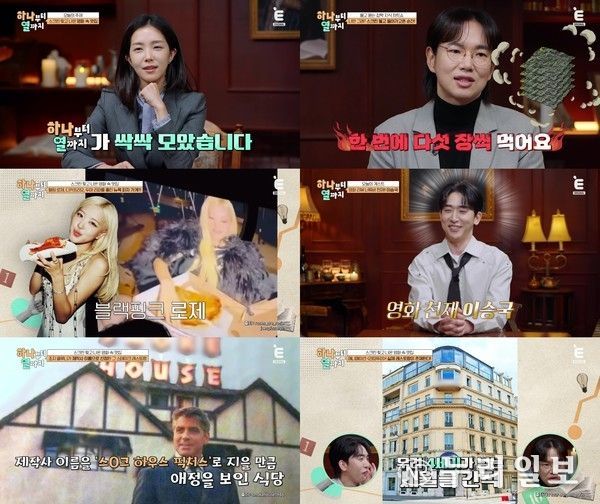 (누리일보) 물고 뜯고 맛보고 즐기는 잡학 지식 차트쇼, 티캐스트 E채널 '하나부터 열까지'에서 장성규·강지영·천재 이승국이 '스크린 찢고 나온 영화 속 맛집'을 주제로 흥미로운 순위 대결을 펼친다.