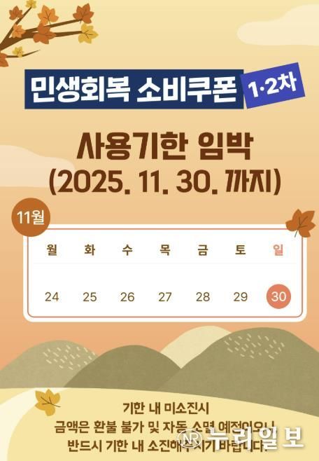 (누리일보) 가평군은 주민생활 안정과 지역경제 활성화를 위해 지급된 ‘민생회복 소비쿠폰’의 사용기한이 오는 11월 30일로 종료된다며, 군민들에게 기한 내 적극적인 사용을 당부했다.