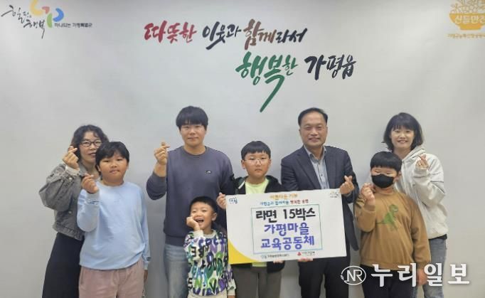 (누리일보) 가평군 가평마을교육공동체는 최근 가평읍 행정복지센터를 방문해 이웃돕기 성품으로 라면 15박스를 전달했다. 이번 성품은 ‘가마공 벼룩시장’에서 아이들이 팀을 이루어 직접 물건을 준비하고 판매에 참여해 얻은 수익금으로 준비한 것이다.