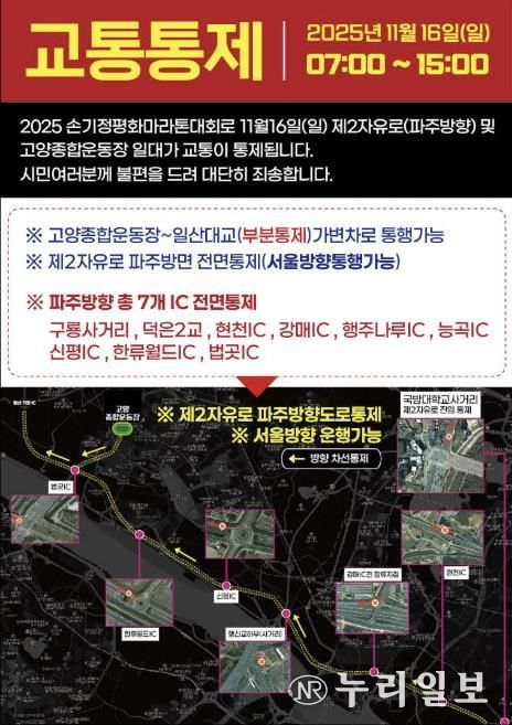 (누리일보) 고양특례시는 오는 16일(일) ‘2025. 손기정평화마라톤대회’ 개최에 따라 고양시 주요 도로 교통통제에 시민들의 적극적인 협조를 당부했다.