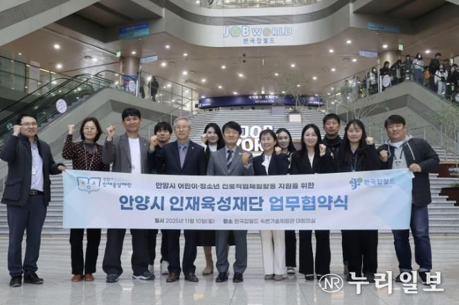 (누리일보) 안양시 인재육성재단은 10일 한국잡월드 숙련기술체험관 대회의실에서 직업진로체험 대표기관인 한국잡월드와 업무협약을 체결했다고 11일 밝혔다. 이번 협약은 안양시 어린이·청소년의 다양한 진로·직업체험 및 교육지원을 위해 양 기관이 상호협력을 강화하고자 추진됐다.