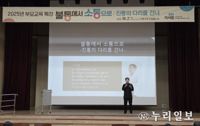 (누리일보) 안산시는 단원구청 단원홀에서 ‘불통에서 소통으로: 진통의 다리를 건너’를 주제로 부모교육 특강을 진행했다고 11일 밝혔다.