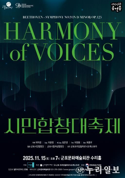 (누리일보) 군포문화재단은 오는 11월 15일 오후 7시, 군포문화예술회관 수리홀에서 시민과 함께하는 대규모 클래식 공연 “2025 시민합창대축제”를 개최한다.