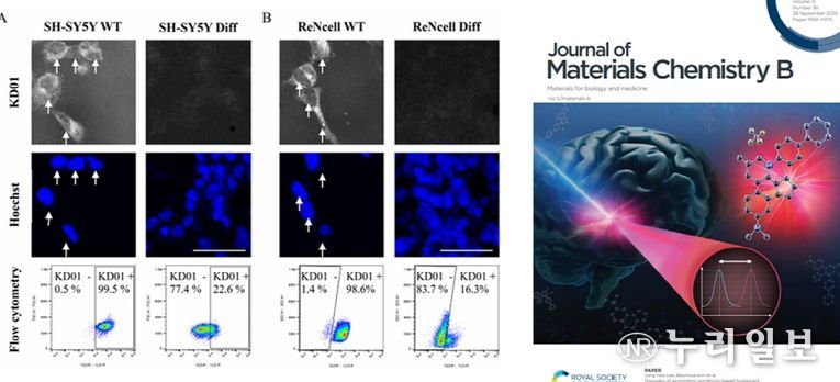 연구진은 비대칭 피리디늄 염(Asymmetric pyridinium salt) 구조 기반의 형광 화합물 라이브러리를 구축하고, 살아있는 신경줄기세포에만 반응해 강한 형광을 발현하는 화합물 ‘KD01’을 도출했다.