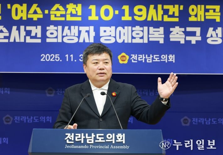 (누리일보) 전라남도의회 정영균 의원(순천1)이 지난 11월 11일 열린 여순사건지원단 행정사무감사에서 여순사건의 시실 왜곡된 인식 확산과 청소년 세대의 역사 인식 부족 문제를 지적하며 “도 차원의 체계적인 모니터링 시스템 구축과 교육청과의 연계 교육 확대가 시급하다”고 강조했다.