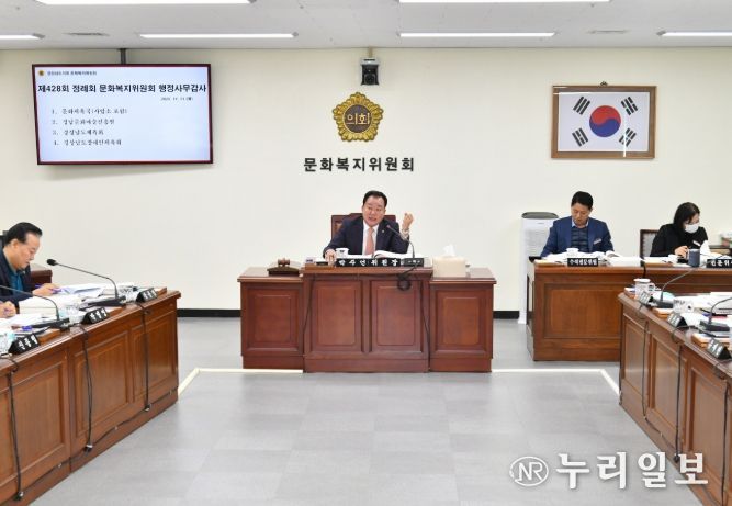 (누리일보) 경상남도의회 문화복지위원회(위원장 박주언)가 11월 11일 오후 문화체육국의 체육지원과 및 직속기관, 공공기관 대상으로 행정사무감사를 진행했으며, 경남체육회의 자산 관리와 회계 처리 문제가 집중적으로 도마에 오르며 질타가 쏟아졌다.