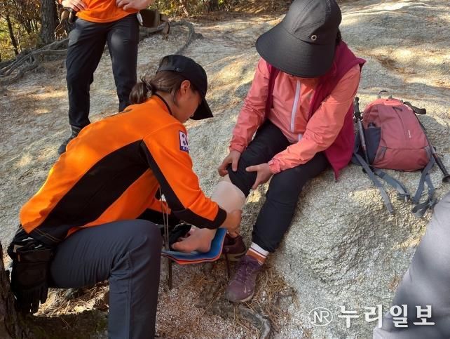 최근 단풍철을 맞아 불암산과 천마산 등 남양주시 주요 등산로에는 주말은 물론 평일에도 등산객이 크게 늘고 있다. 이날도 시민들의 산행 발걸음이 이어지던 가운데, 하산 중 낙엽에 미끄러진 등산객이 발목을 접질리는 사고가 발생했다.