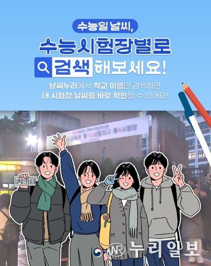 (누리일보) 날씨누리에서 학교 이름만 검색하면 내 시험장 날씨를 바로 확인할 수 있어요!