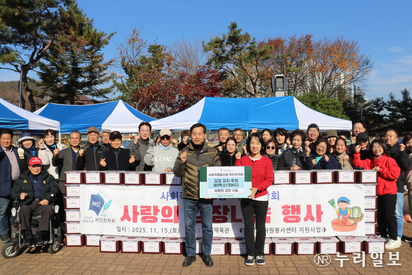 사회적협동조합 처인장학회가 15일 용인시 실내체육관에서 ‘사랑의 김장나눔’ 행사를 열고 지역의 장애인가정과 저소득층을 위한 김장김치 125박스를 직접 담갔다. 장학회 회원들은 절임이 끝난 배추에 양념을 채우고 포장하는 작업을 분담해 겨울철 취약계층 가정을 돕기 위한 나눔을 이어갔다.