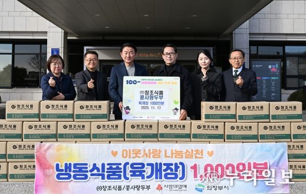 (누리일보) 의정부시는 11월 17일 ㈜창조식품이 냉동식품(육개장) 1천인분(550만 원 상당)을 송산·신곡권역에 기부하며 ‘100일간 사랑릴레이 배턴 잇기’ 에 동참했다고 밝혔다.