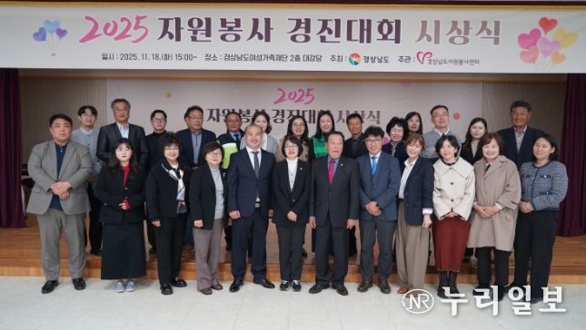 (누리일보) 경상남도는 18일 경남여성가족재단 대강당에서 ‘2025 자원봉사 경진대회 시상식’에서 지역사회 자원봉사 활성화에 기여한 29개 팀에 도지사상을 수여했다고 밝혔다.