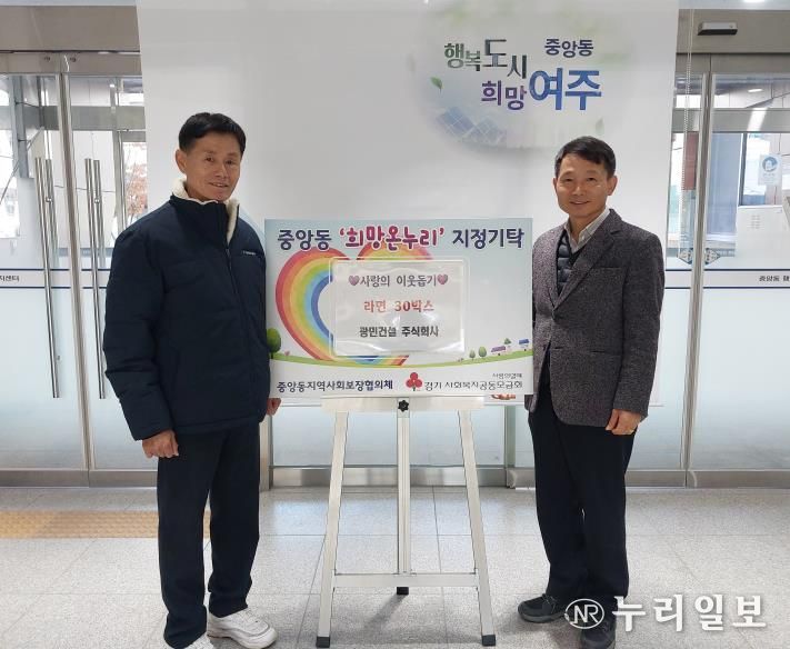 (누리일보) 여주시 중앙동 소재 광민건설㈜은 지난 18일 동 행정복지센터를 방문해 관내 저소득 취약계층을 위한 라면 30박스를 기탁했다.