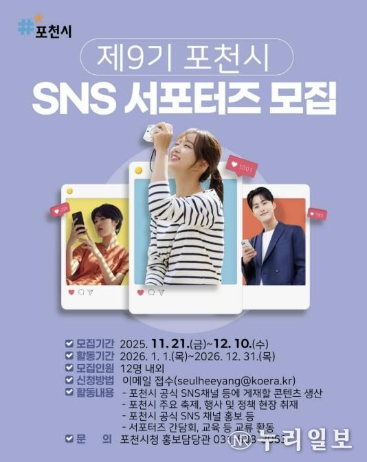 (누리일보) 포천시는 시민의 시선으로 시정과 지역 소식을 생생하게 전달할 ‘2026년 제9기 포천시 누리소통망(SNS) 서포터즈’를 오는 12월 10일까지 공개 모집한다.
