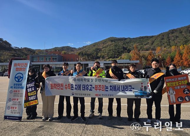 (누리일보) 영산강유역환경청은 11월 21일, 순천완주고속도로 황전휴게소(완주방향)와 남해고속도로 섬진강휴게소(부산방향)에서 한국도로공사(광주전남본부)와 함께 ‘유해화학물질 운반차량 화학안전 캠페인’을 실시했다고 밝혔다.