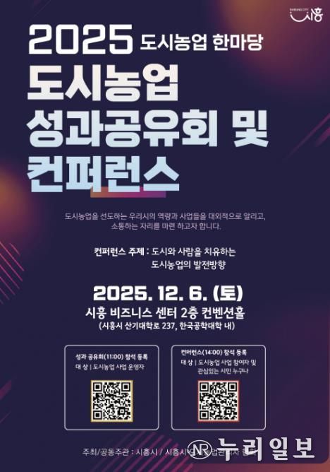 (누리일보) 시흥시는 오는 12월 6일 한국공학대학교 내 시흥비즈니스센터 컨벤션홀에서 ‘2025년 도시농업 한마당 성과공유회 및 콘퍼런스’를 개최한다. 이번 행사는 한 해 동안 추진한 도시농업 정책과 활동을 시민과 공유하고, 도시농업이 나아가야 할 미래 발전 방향을 전문가들과 함께 논의하기 위해 마련됐다.