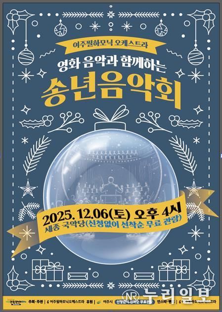 (누리일보) 여주 필하모닉 오케스트라는 오는 12월 6일 오후 4시, 세종국악당에서 '영화 음악과 함께하는 2025 송년음악회'라는 주제로, 연말을 맞아 여주시민과 함께 영화 속 명장면을 음악으로 되살리는 특별한 무대를 준비한다.