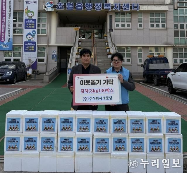 (누리일보) 광주시 초월읍에 소스 제조 공장을 두고 있는 주식회사 명륜당은 지난 21일 김장 김치 30박스를 경기 사회복지공동모금회를 통해 광주시 초월읍에 기탁했다.