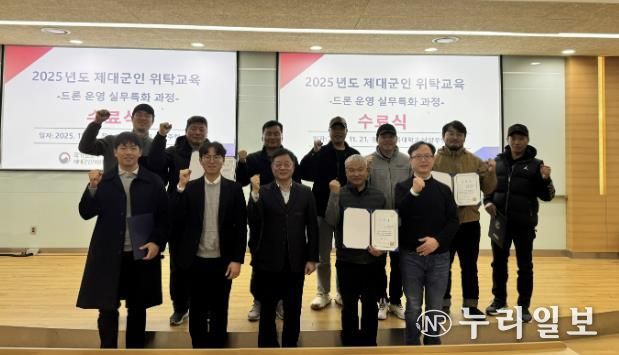 (누리일보) 경기북부보훈지청 제대군인지원센터는 11월 21일에 경복대학교 평생교육대학(경기 남양주)에서 9월에 시작된 ‘드론 운영 실무특화’ 위탁교육과정을 성공적으로 마무리하고, 총 10명의 교육생 전원이 교육을 수료했다고 밝혔다.