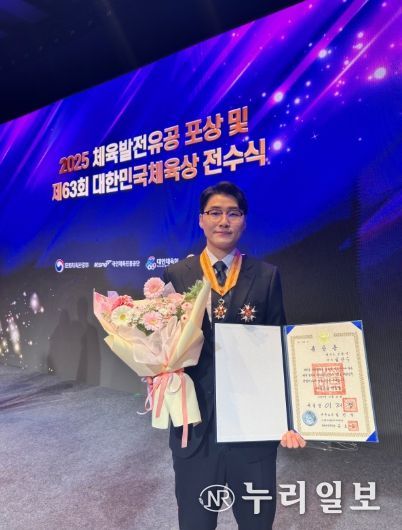 (누리일보) 고양특례시 소속 직장운동경기부 세팍타크로팀의 임안수 선수가 지난 21일 서울 웨스틴조선호텔 그랜드볼룸에서 열린 ‘2025 체육발전유공 포상 및 제63회 대한민국체육상 전수식’에서 체육훈장‘맹호장’을 수훈했다.