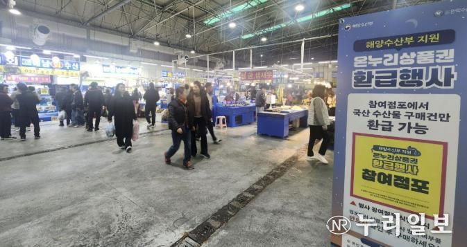 이번 행사는 수산물 소비촉진과 도매시장 활성화를 위해 해양수산부 지원으로 지난 추석 명절에 이어 두 번째로 개최됐다. 수산동 26개 점포가 참여한 이번 행사는 국내산 수산물 구매 시, 구매 금액의 최대 30%(1인 2만원 한도 내)를 온누리상품권으로 환급하는 혜택을 선보였다.